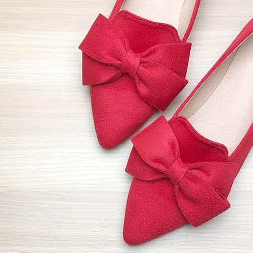 LUXINYU Women Soft Suede Bowknot Shoes Dressy Pointed Toe Slip on Ballet Flats Comfortable Moccasins Work Flats Low Heel Casual Dress Shoes 6