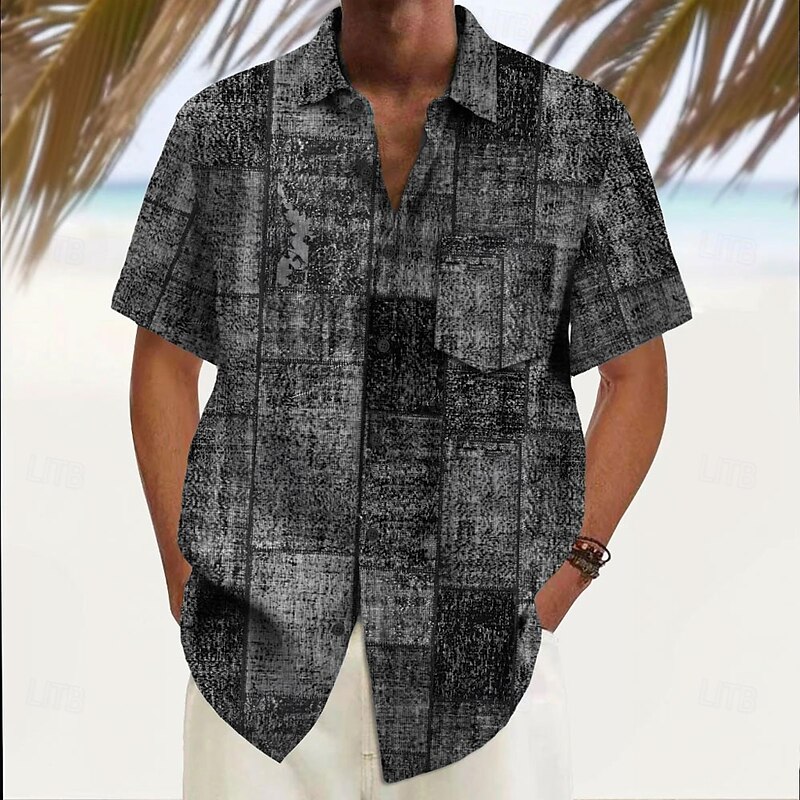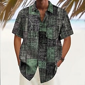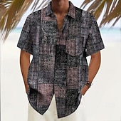 More information about Men's Geometric Color Block Patchwork Shirt Summer Shirt Button Up Shirt Short Sleeve Fashion Casual Outdoor Vacation Dailywear Summer Spring Turndown 3D Print Collared Shirts Front One Pocket Pink