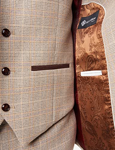 Mens Check Tweed Beige Brown 3 Piece Suit Wedding Prom Vintage Retro Classic 6