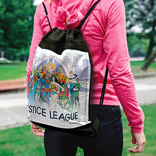 LOGOVISION Justice League Hall of Justice Drawstring Backpack Sports Bag Sackpack 17" x 13", Perfect for Gym, Yoga or Practice 4
