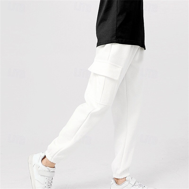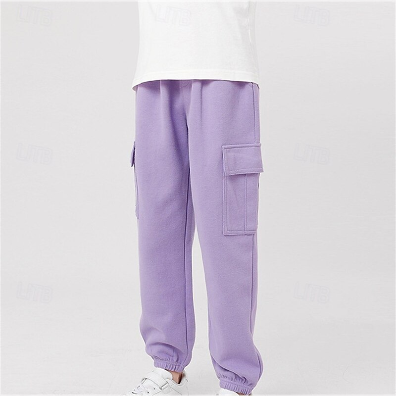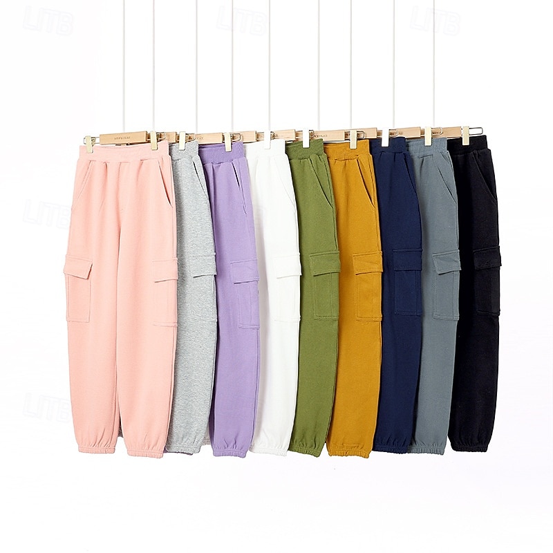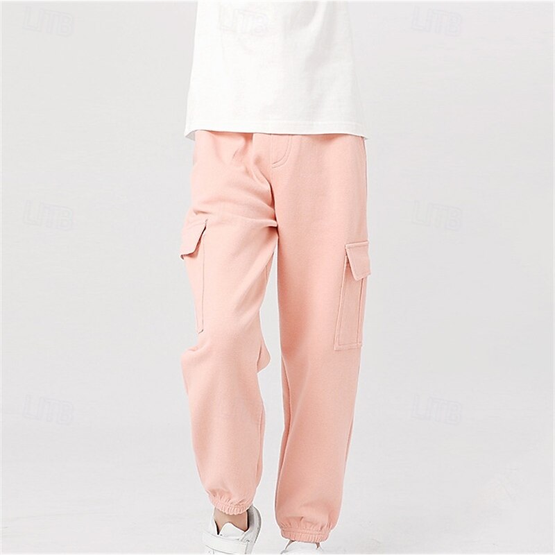 Kids Girls' Trousers Solid Color Streetwear Pocket School 4 years+ Spring Black White Pink 21