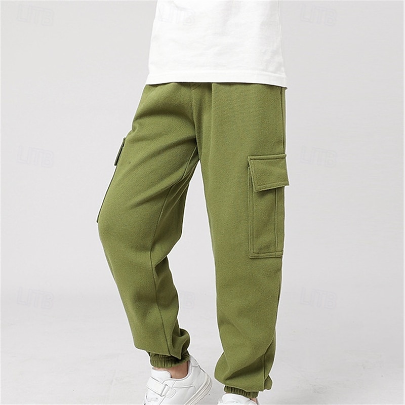 Kids Girls' Trousers Solid Color Streetwear Pocket School 4 years+ Spring Black White Pink 32