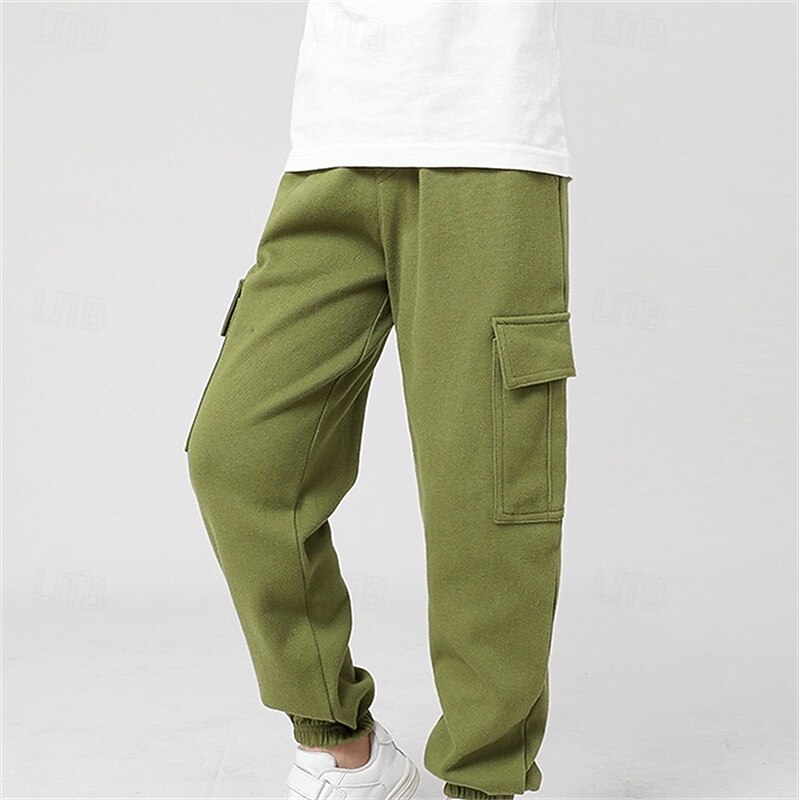 Kids Girls' Trousers Solid Color Streetwear Pocket School 4 years+ Spring Black White Pink 14