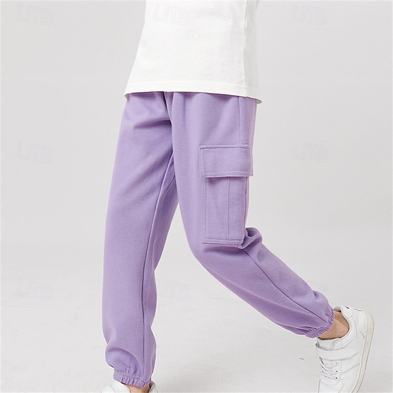 HOT ! Kids Girls' Trousers Solid Color Streetwear Pocket School 4 years+ Spring Black White Pink