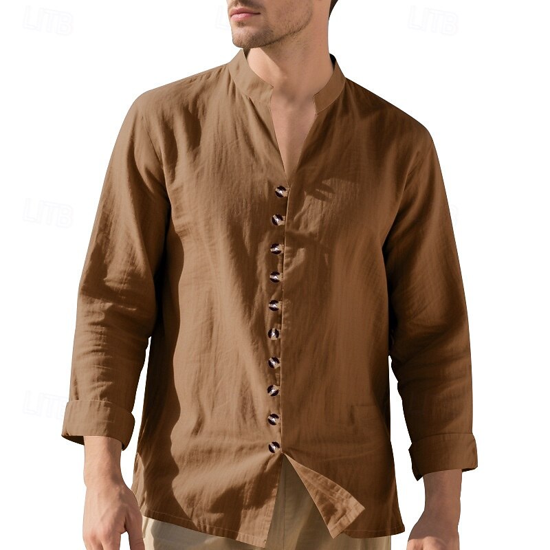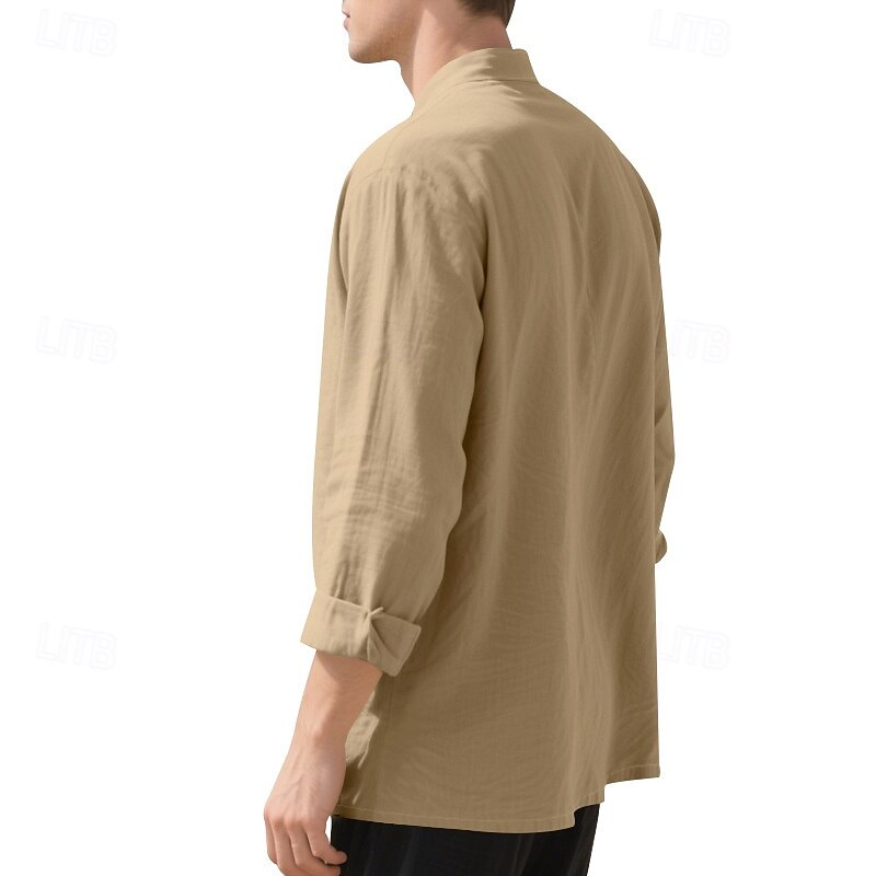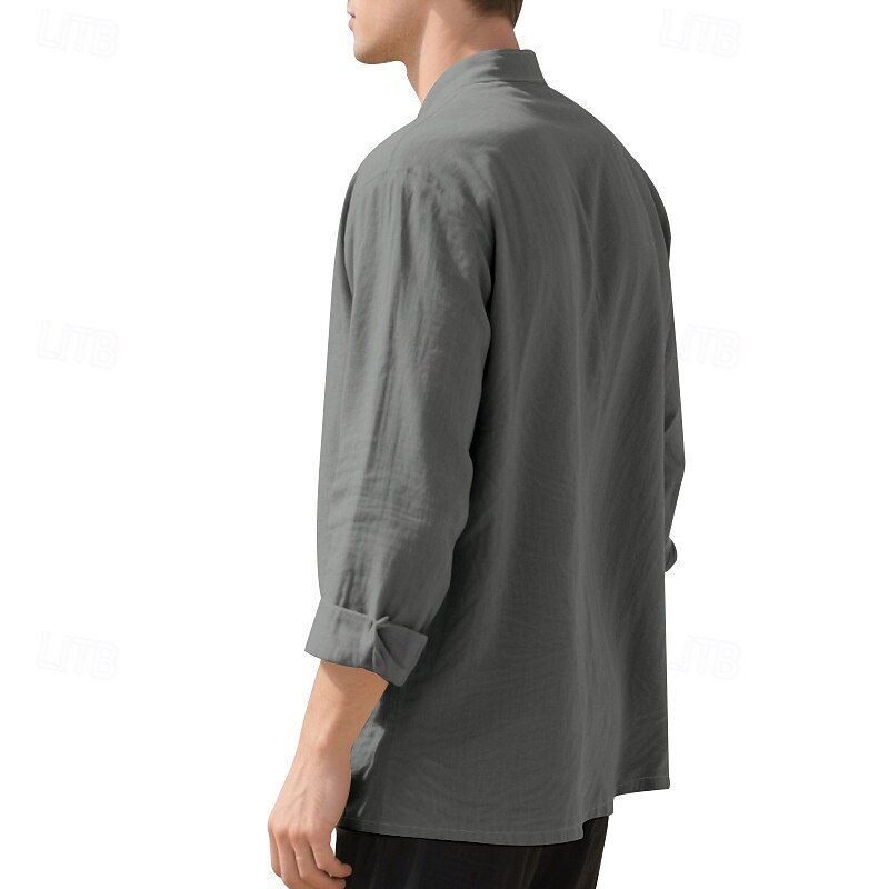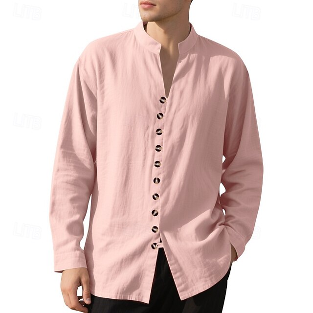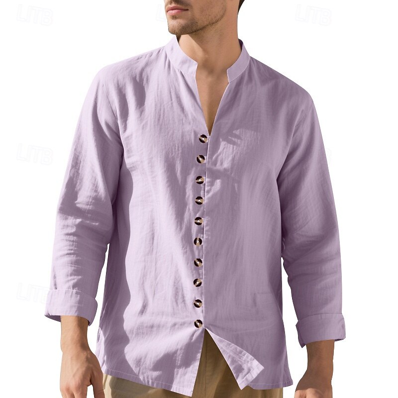 More information about Men's Shirt Linen Shirt Casual Shirt Button Up Shirt Cotton Shirt Plain Vacation Hawaiian Black White Pink Purple Long Sleeve Band Collar Spring Fall Clothing Apparel Buttons