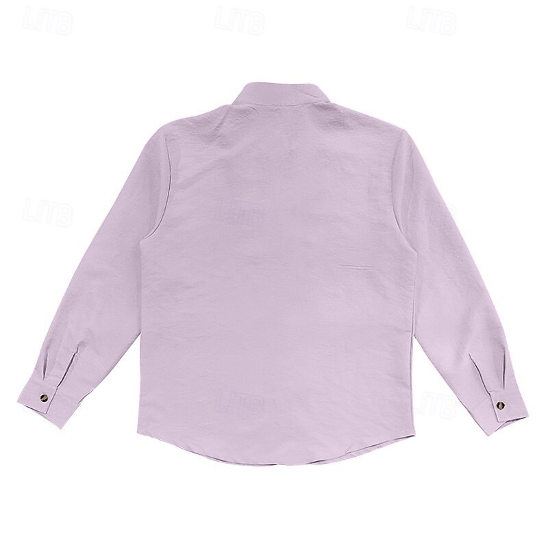 Men's Shirt Linen Shirt Casual Shirt Button Up Shirt Cotton Shirt Plain Vacation Hawaiian Black White Pink Purple Long Sleeve Band Collar Spring Fall Clothing Apparel Buttons 4