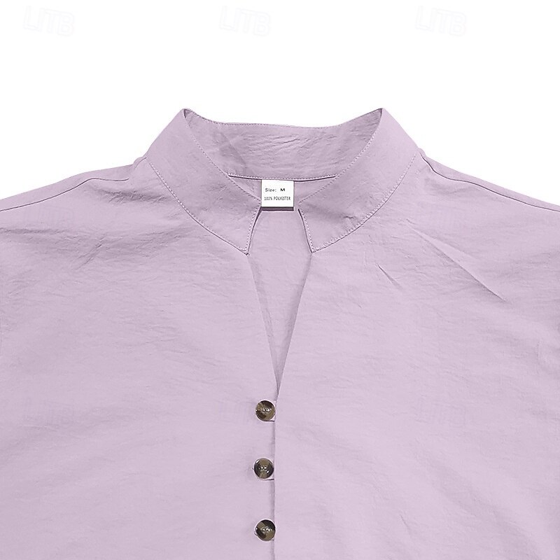 Men's Shirt Linen Shirt Casual Shirt Button Up Shirt Cotton Shirt Plain Vacation Hawaiian Black White Pink Purple Long Sleeve Band Collar Spring Fall Clothing Apparel Buttons 5