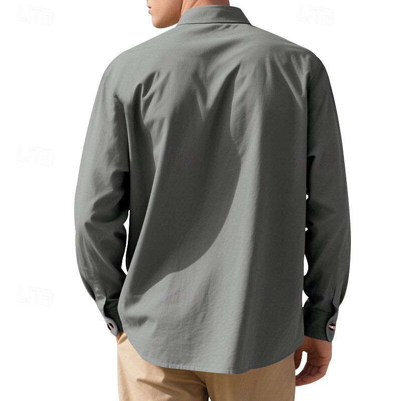 Highlights - Transition seamlessly from spring to fall with this Men's Casual Linen Shirt - Stay comfortably covered with Long Sleeves - Perfect for a vacation with button detailing - Elevate your casual style with this versatile top