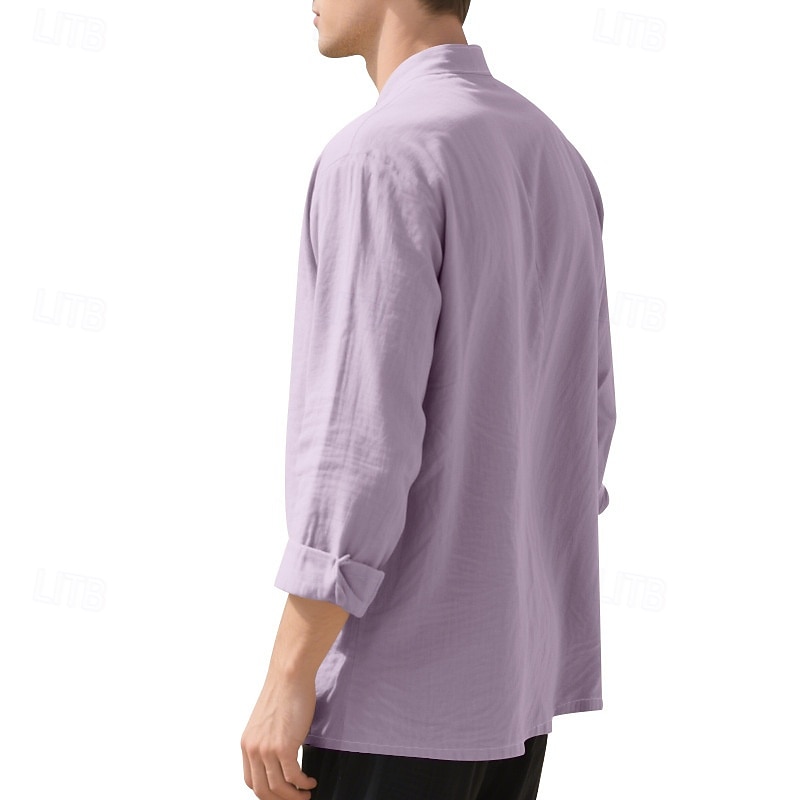 Men's Shirt Linen Shirt Casual Shirt Button Up Shirt Cotton Shirt Plain Vacation Hawaiian Black White Pink Purple Long Sleeve Band Collar Spring Fall Clothing Apparel Buttons 9