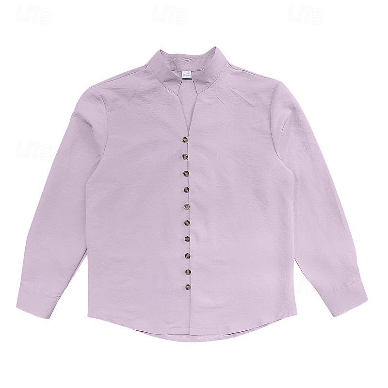 Men's Shirt Linen Shirt Casual Shirt Button Up Shirt Cotton Shirt Plain Vacation Hawaiian Black White Pink Purple Long Sleeve Band Collar Spring Fall Clothing Apparel Buttons 27