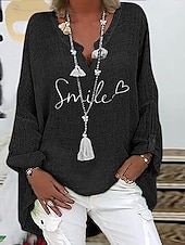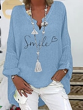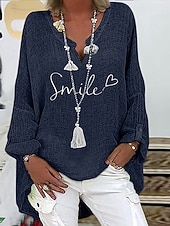 More information about Women's Cotton Shirts Letter Basic Casual Long Sleeve V Neck Regular Tops Daily Print Black Navy Blue Sky Blue Summer Spring Fall