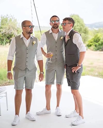 Men Suit Linen Set Vest and Pants Slim Fit Outfit 2 Pieces Casual Style Homecoming Summer Wedding Stylish 6