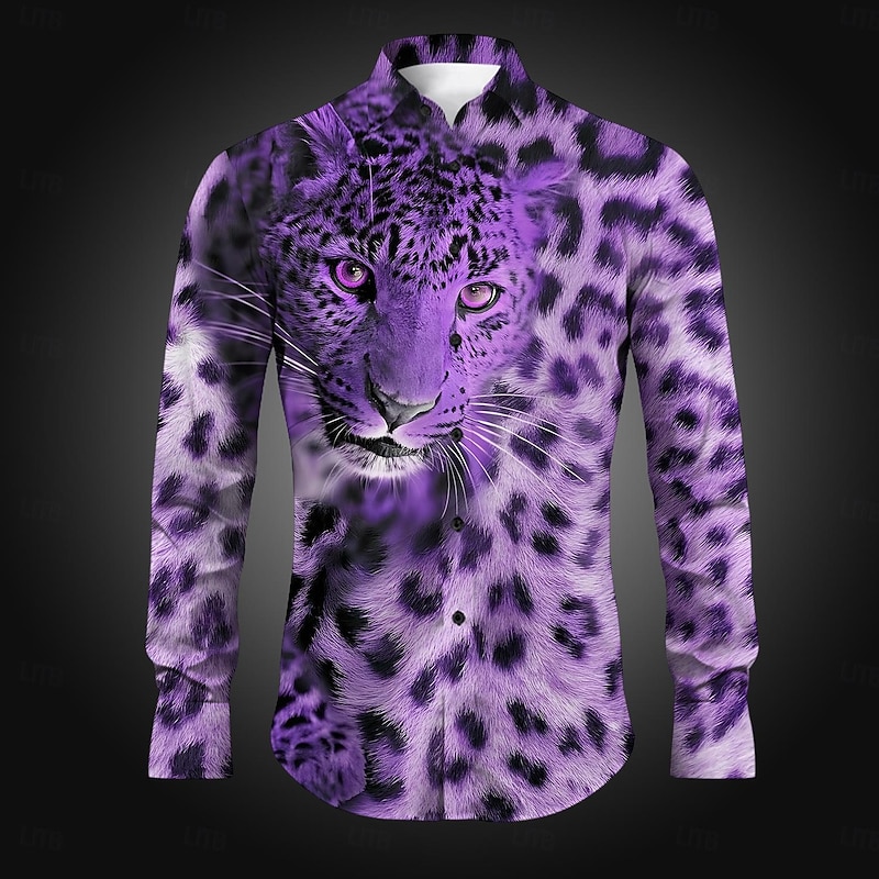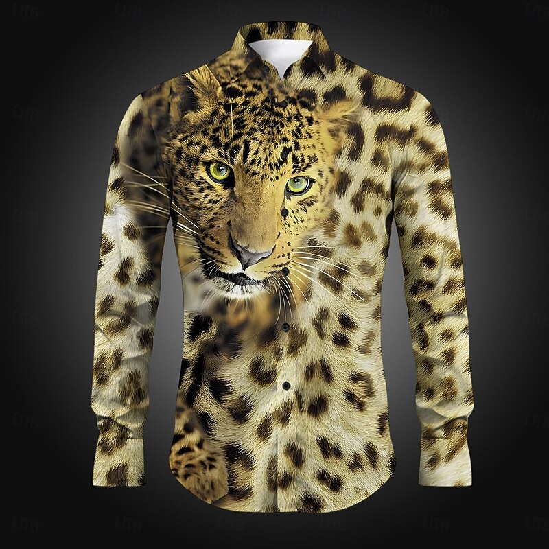 Why Choose Men's Leopard Button Up Shirt Printed Shirts Long Sleeve Casual Party Daily Holiday Fall Winter Spring & Summer Collared Shirts Buttons Print Yellow Blue Purple Brown Gray?