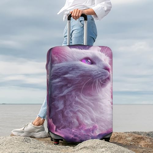 White Cat In Space Elastic Travel Luggage Covers Dustproof Scratch-Resistant Suitcase Protector Fit 22-24 Inch 3