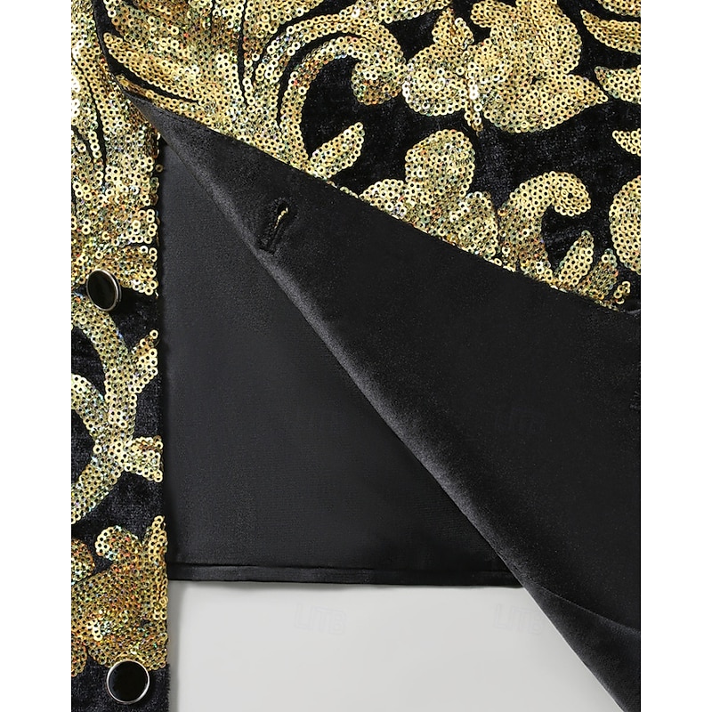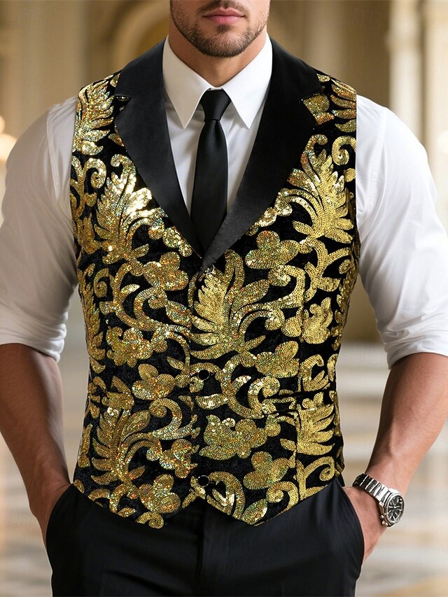 More information about Men's Vest Waistcoat Gilet Vacation Party Business Fashion Casual Spring Fall Pocket Buttons Sequin Polyester Comfortable Flocking Single Breasted One-button Peaked Lapel Regular Fit Gold Vest