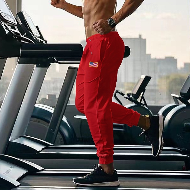 HOT ! Men's Athletic Pants Sweatpants Joggers Trousers Pocket Elastic Waist Drawstring American Flag Comfort Sports Outdoor Daily Fashion Casual Black Yellow Micro-elastic