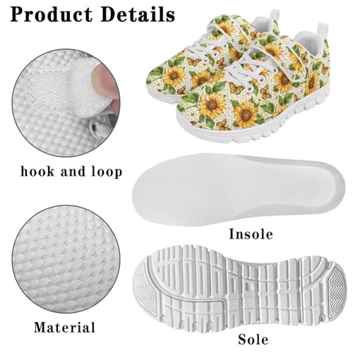Kids Sneakers Running Tennis Athletic Shoes for Boys&Girls (Little Kid/Big Kid) White Sole Sunflowers Butterfly Print 4