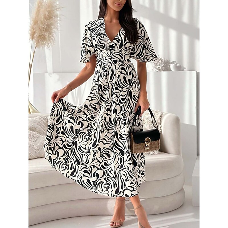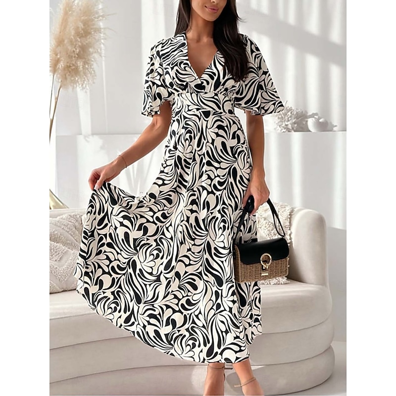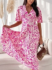 More information about Women's Midi Dress Casual Dress Swing Dress A Line Dress Stylish Casual Vacation Daily Regular Fit Floral Short Sleeve V Neck White Red Summer