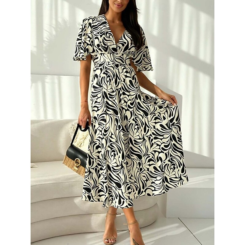 HOT ! Women's Midi Dress Casual Dress Swing Dress A Line Dress Stylish Casual Vacation Daily Regular Fit Floral Short Sleeve V Neck White Red Summer