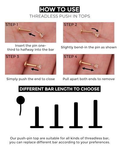 20G/18G/16G Threadless G23 Titanium Silver Gold Replacement Post Bar Flat Back Stud Earrings for Nose Helix Cartilage Tragus Conch Lobe Labret Medusa Piercing Jewelry for Women Men 4