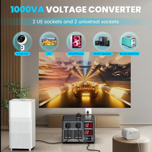 1000W Voltage Converter Transformer(110V to 220V or 220V to 110V) Step Up/Down Converter 110/120 Volt - 220/240 Volt w/US Power Cord,Circuit Breaker Protection, LCD Screen Display 4