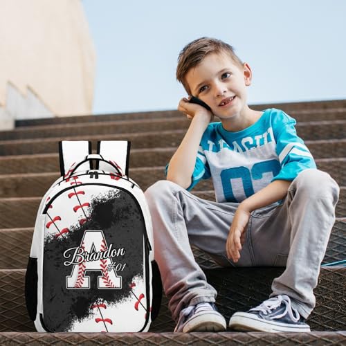 Voltexia Personalized Baseball Backpacks for Kids Baseball Backpack Custom Initial Monogram Bookbag with Name Sports Theme School Bag for Boys Girls 7