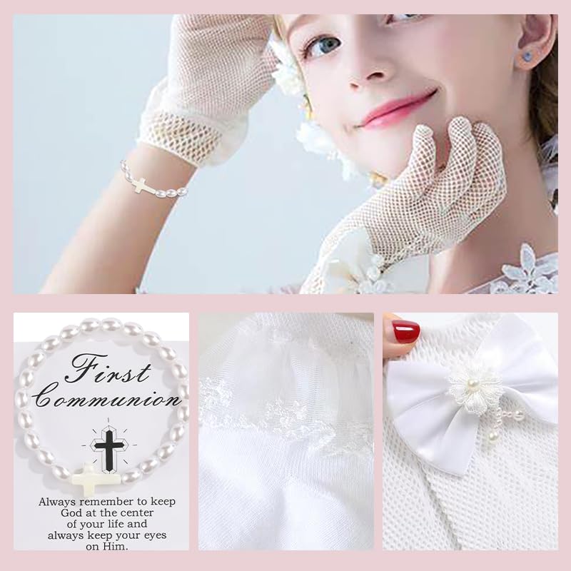 First Communion Veils Set 1st Communion Wreath Veil Pearl Bracelet Gloves Sock Accessories 4