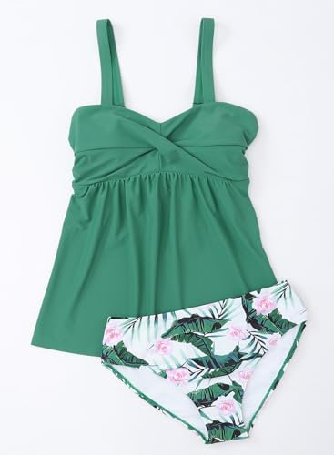 Summer Tankini Set Twisted Cami Tank Swim Top Adjustable Strap Floral Bottom Beach Vacation Swimwear 1
