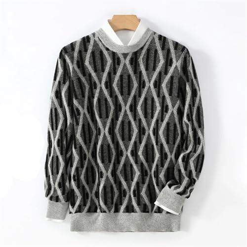 HOT ! Men's Fall Winter Pure Wool Sweater Round Neck Thickened Diamond Color Matching Knitted Loose Cashmere Sweater