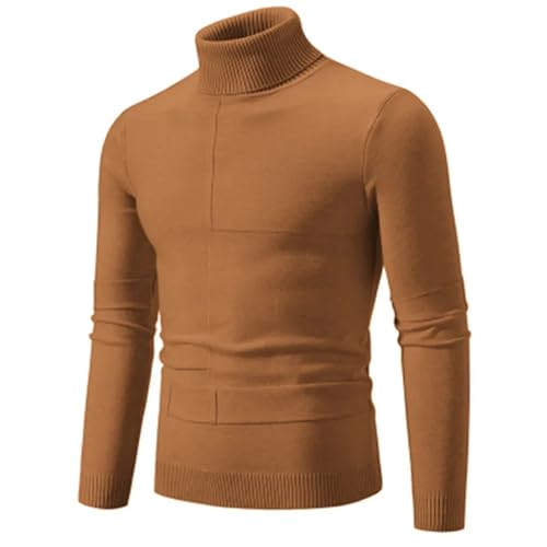 Men's Turtleneck Sweater Warm Slim Fit Knit Pullover Solid Color Casual Sweater 6