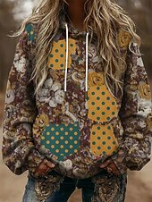 More information about Women's Pullover Hoodies Plaid Color Block Vintage Streetwear Casual Long Sleeve Hooded Regular Tops Dailywear Casual Sports Drawstring Pocket Print Yellow Spring Fall