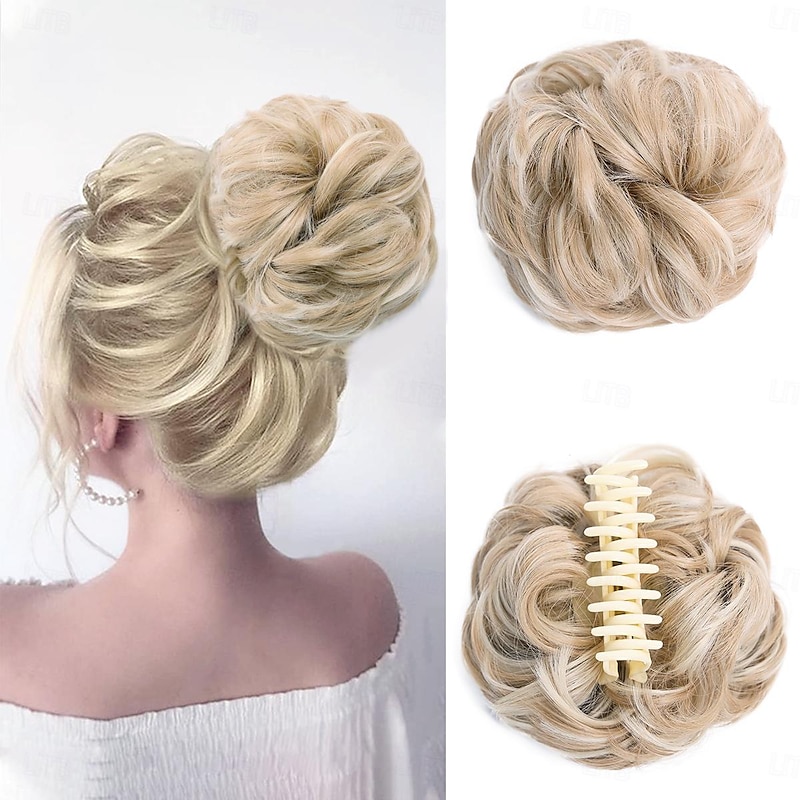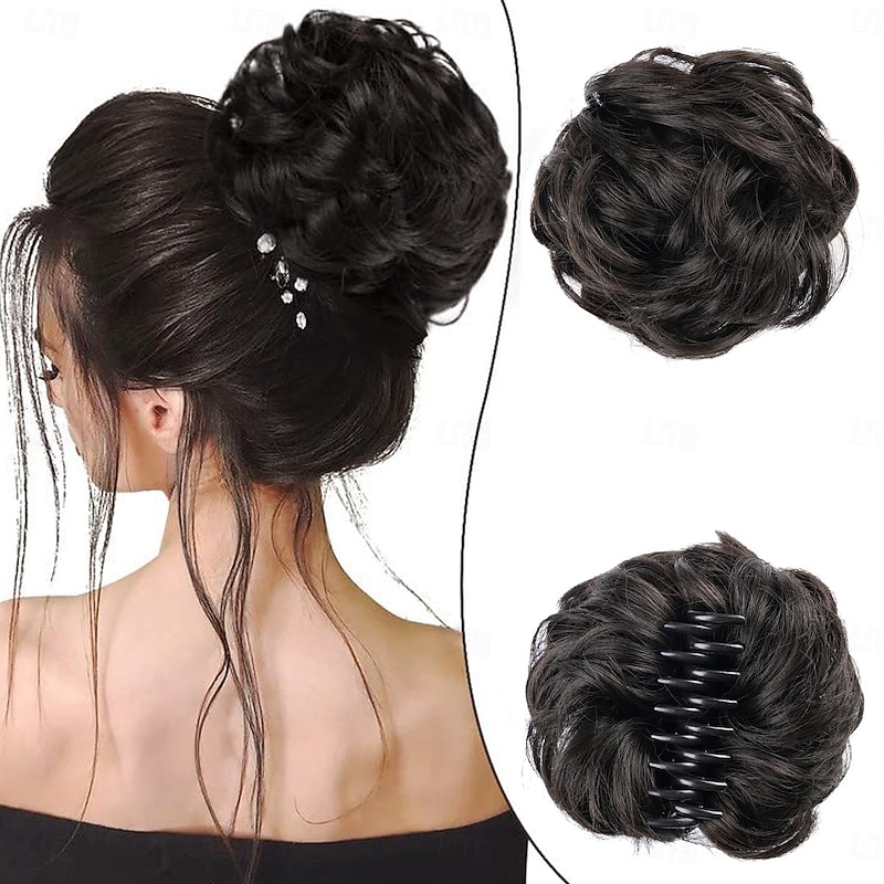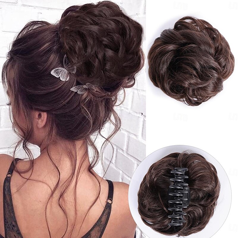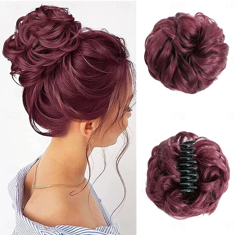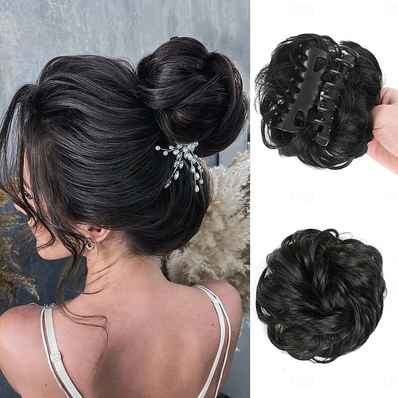 HOT ! Claw Clip Hair Piece Synthetic Hair Buns Wavy Curly Chignon Hair Bun Extensions Tousled Updo Hair Buns Claw Ponytail Hairpieces Hair Scrunchie with Clip for Women