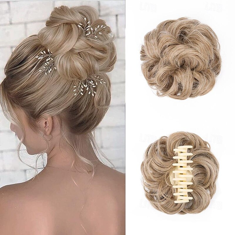 Claw Clip Hair Piece Synthetic Hair Buns Wavy Curly Chignon Hair Bun Extensions Tousled Updo Hair Buns Claw Ponytail Hairpieces Hair Scrunchie with Clip for Women 12