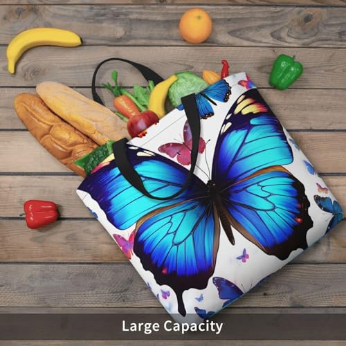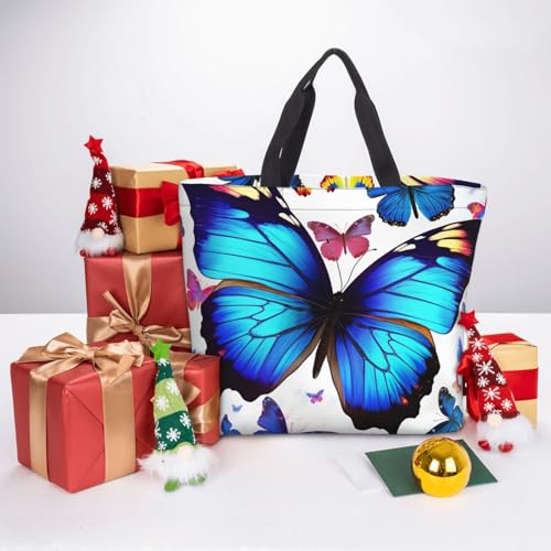 HOT ! Colorful Butterfly Tote Bag for Women, Zipper Casual Tote's Handbag for Travel, Work, Lightweight Laptop Bags Big Capacity Shoulder Bag Reusable Grocery Shopping Bags