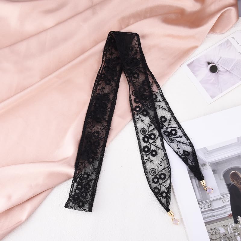 • Stylish Head Scarves for Women's Hair: The floral lace hair band black is a good choice as hair styling tools, tie it up freely into any shape you want, braided hair tie, women's novelty scarves, lace embroidered flower long scarf retro head headband