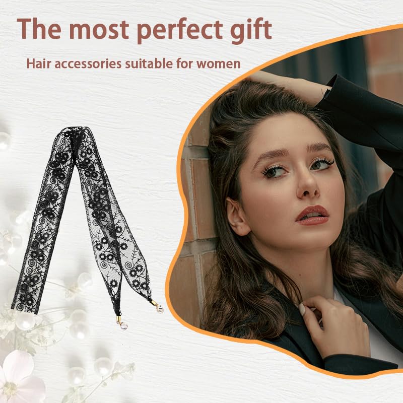 • Premium Quality: This women's floral lace scarf headwrap is made of premium quality lace, soft and comfortable, without damaging hair, size of it is 148 x 7cm, weighs around 15g, lace scarf hair ribbons for women, black hair bandana, ponytail scarf for women hair ties scarf