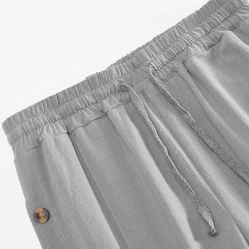 Linen Pants for Men Drawstring Ventilate Button Long Trousers Straight Loose Lounge Pants Solid Color Casual 4