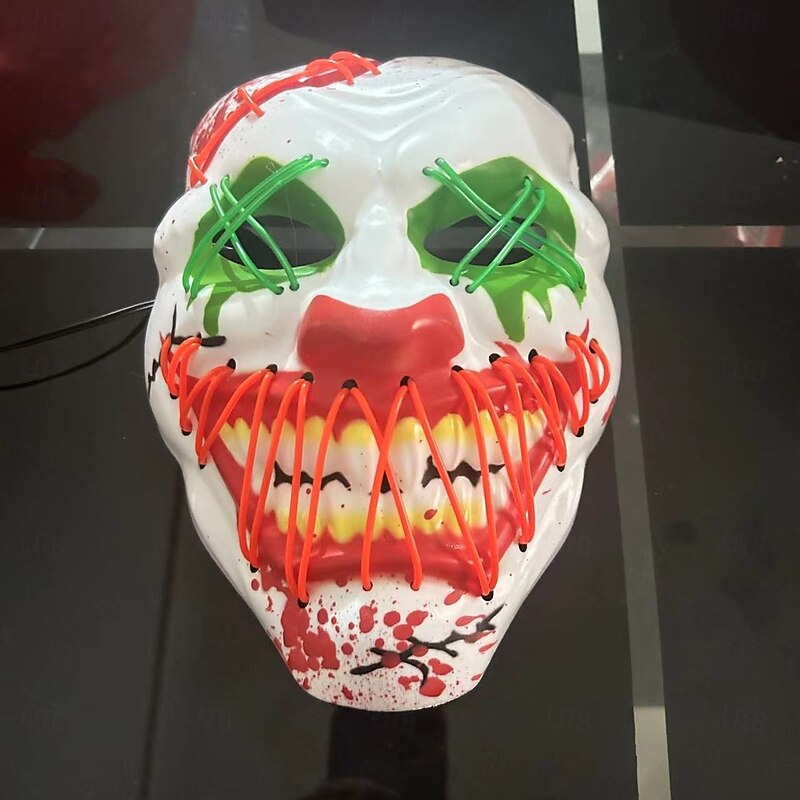 1 Pc 30 * 20CM Halloween New LED Luminous Clown Mask Halloween Fun Party COS Adult Makeup Cold Light Mask AA Battery Box 1