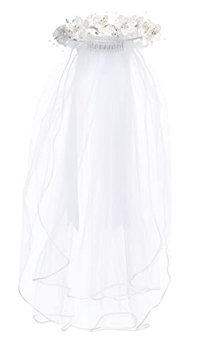 • ✨YOUR DAUGHTER WILL LOVE IT: This 1st communion veil features lovely satin flowers with rhinestones, pearls, beads and crystals on a comb - Hand Wash Cold, Hang to Dry