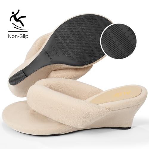 • Wedge Design:These dressy flip flops for women are specially designed with arch support high-density yoga mat footbed that helps to evenly distribute foot pressure and reducing fatigue. Fashion Vegan leather strap:The upper of these womens sandals dressy is made of fuzzy leather straps and a knitted toe clips,soft and non-abrasive to the feet.