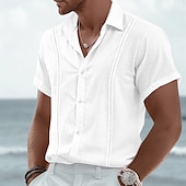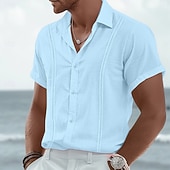 More information about Men's Shirt Linen Shirt Guayabera Shirt Summer Shirt Beach Shirt Summer Hawaiian Shirt Solid Color Vacation Street White Pink Light Blue Short Sleeve Collar Summer Spring & Summer Clothing Apparel