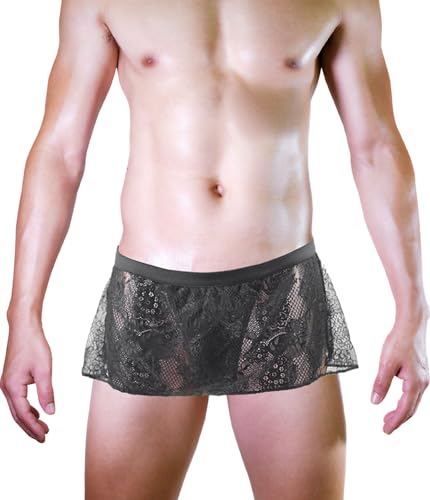 FEOYA Men's Crossdressing Sissy Lace Lingerie Skirted Panties Low Waist Mesh Sheer G-string Briefs Bikini Underwear Nightwear 1