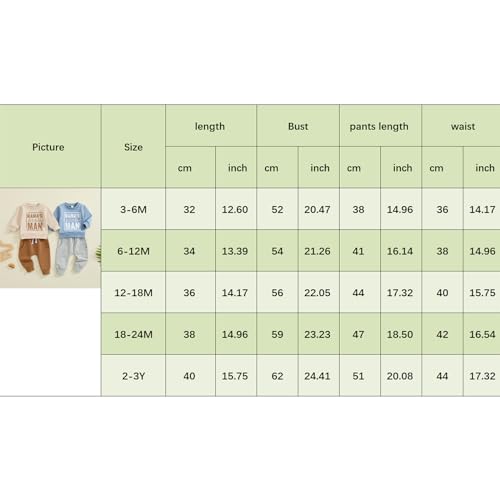 • Package include: 2 piece /baby boy sweatshirt and pants set (1pc Mamas little man sweatshirt tops & 1pc jogger sweatpants).