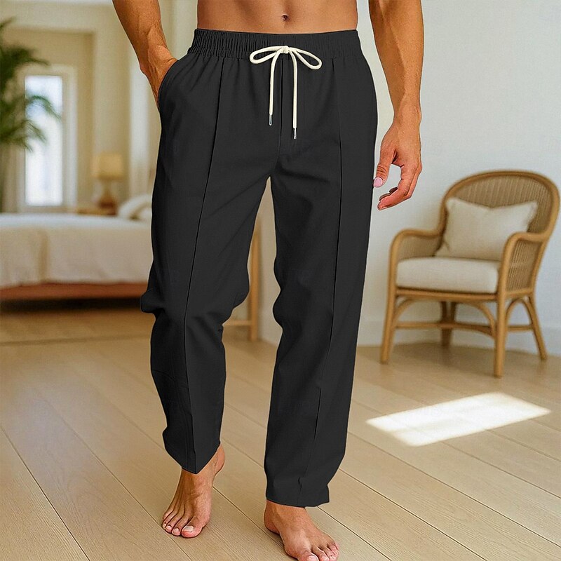 HOT ! Men's Linen Pants Trousers Summer Pants Baggy Pants Beach Pants Drawstring Pocket Elastic Waist Plain Comfort Breathable Full Length Vacation Daily Holiday Vacation Hawaiian Black White Micro-elastic
