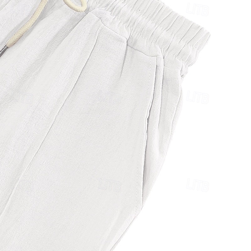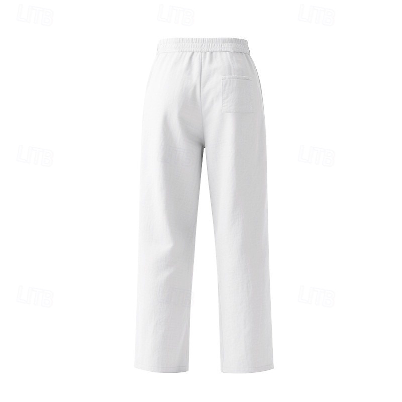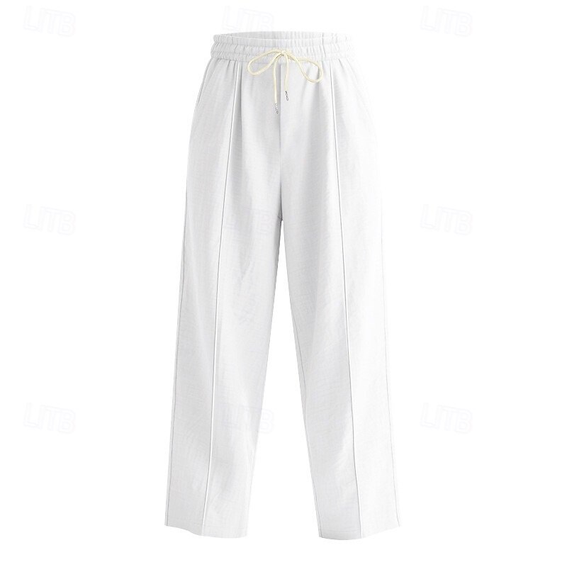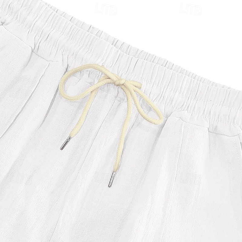 More information about Men's Linen Pants Trousers Summer Pants Baggy Pants Beach Pants Drawstring Pocket Elastic Waist Plain Comfort Breathable Full Length Vacation Daily Holiday Vacation Hawaiian Black White Micro-elastic
