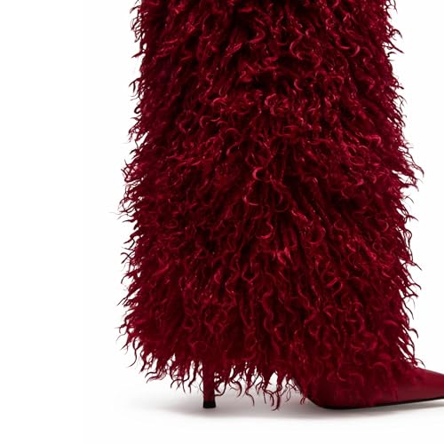 More information about Faux Fur Knee High Boots Women Pointed Toe Slouchy Fold Over Fall Boots Stiletto High Heels Pull on Tall Wide Calf Winter Shoes