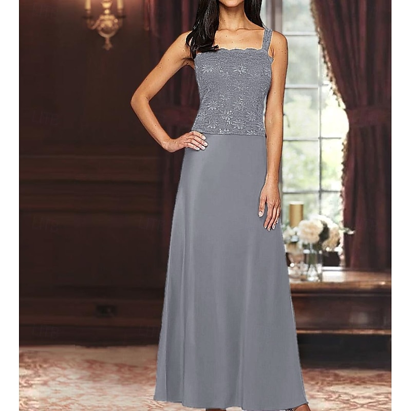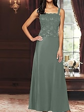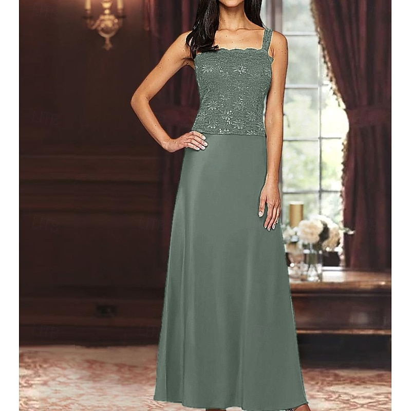 More information about A-Line 3 Piece Mother of the Bride Dress Formal Wedding Guest Elegant Simple Luxurious Square Neck Floor Length Satin Lace 3/4 Length Sleeve with Lace Sequin