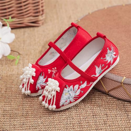 HOT ! Hcclijo Floral Children Pearl Shoes Flats Ancient Round Toe Kids Traditional Hanfu Oriental EmbroidePhoenix Poeny