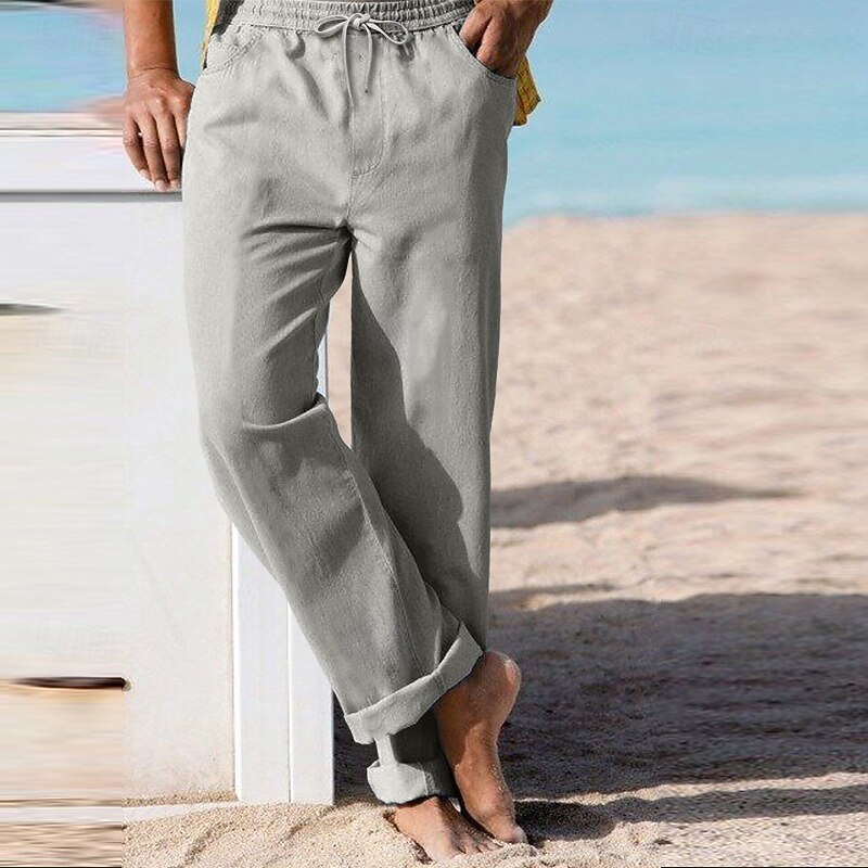 More information about Men's Linen Pants Trousers Summer Pants Beach Pants Drawstring Elastic Waist Straight Leg Plain Comfort Breathable Full Length Casual Daily Holiday Vacation Fashion White Sky Blue