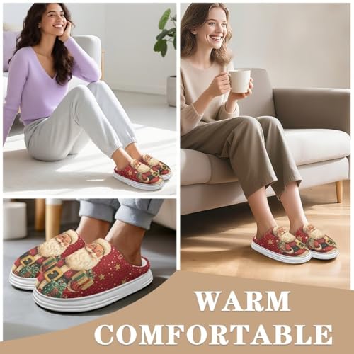 Slippers for Women Warm Flannel Hard Sole Slippers Holiday Decor 5-11 4